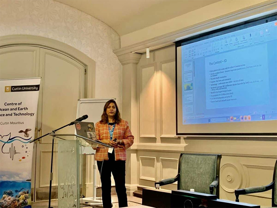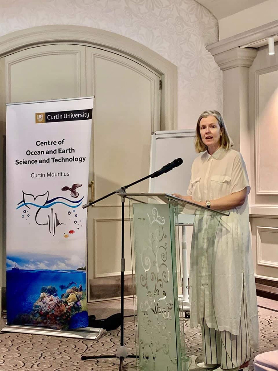 S.E. Kate Chamley, Haut-commissaire d’Australie à l’île Maurice, a ouvert l’évènement en appelant à la collaboration transfrontalière. « L’Australie s’est engagée à contribuer à l’élaboration d’une région qui fonctionne selon un ensemble de règles respectant la souveraineté et les droits de l’homme, » a-t-elle souligné. Plusieurs chercheurs – notamment le Dr Venugopalan Pallayil de l’Université du Singapour, le Prof. Malcom Heron du James Cook University en Australie, la Prof. Christine Erbe de Curtin Mauritius et le Prof. John R. Potter de l’Université Norges Teknisk-Naturvitenskapeligd en Norvège – ont présenté des innovations scientifiques pour mieux comprendre et protéger l’océan.