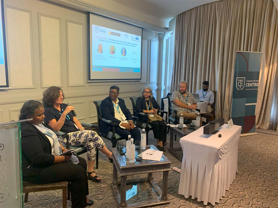 La première journée s’est conclue à Odysseo avec une deuxième table ronde, modérée par le Dr Emilie Wiehe et abordant les défis de la recherche dans le paysage complexe de l’océan Indien occidental. Le Dr Pallayil a plaidé pour de plus étroites collaborations avec les universités internationales et le secteur privé, tandis que le Dr Christian Bueger de l’Université de Copenhague a mis en avant le besoin d’une meilleure coopération entre les sciences politique et naturelles pour concevoir l’océan comme un espace interconnecté. Par ailleurs, Raj Mohabeer, Chargé de Mission à la COI a appelé à plus de recherches fondées sur l’action et le Dr Riad Sultan de l’UOM a souligné que le financement de la recherche océanographique est souvent influencé par les intérêts économiques tout en appelant à la publication régulière des données collectées pour mieux informer les stratégies politiques.