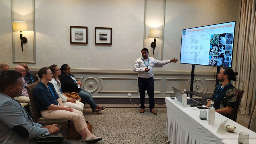 La deuxième journée de conférence, a été consacrée à la présentation des travaux de jeunes chercheurs travaillant sur les défis environnementaux de l’océan Indien occidental, sous la direction du Prof. Ranjeet Bhagooli de l’UOM. Ce dernier et son équipe ont présenté leurs travaux sur les changements dans les habitats des récifs coralliens, les coraux Stylophora madagascarensis et leur réponse au stress thermique, et l’identification des cachalots vivant dans les eaux mauriciennes. D’autres études ont exploré les anomalies de croissance des coraux Acropora, la distribution du mollusque Pinna muricata autour de Maurice et Rodrigues et la diversité des poissons de récif autour de Saint-Brandon. En outre, le Dr Lisa Ah Shee Tee du Reef Association a partagé ses travaux de la conservation volontaires des aires marines comme alternative aux aires marine protégées traditionnelles.